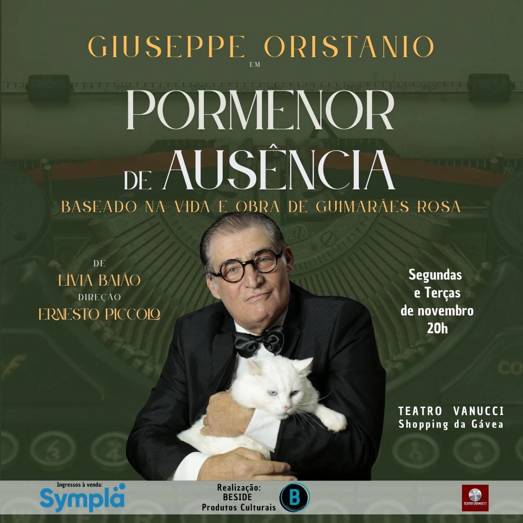 Novembro de 1967, Guimarães Rosa está às voltas com problemas de saúde e se preparando para a sua posse na Academia Brasileira de Letras. É nesse contexto que são evocados os últimos anos de vida do escritor em "Pormenor de Ausência", que retorna aos palcos cariocas para curta temporada no Teatro Vannucci, no Shopping da Gávea, de 03 a 25 de novembro, segundas e terças-feiras, às 20h.